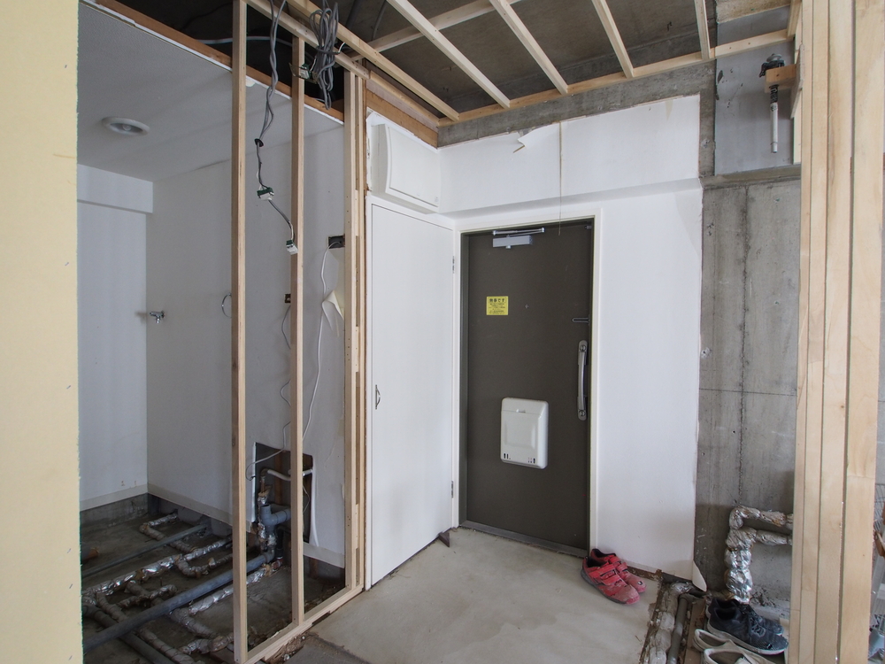 玄関の施工中
