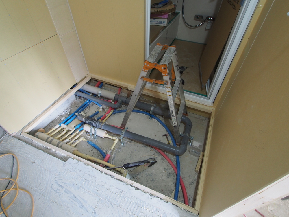 洗面室の施工中