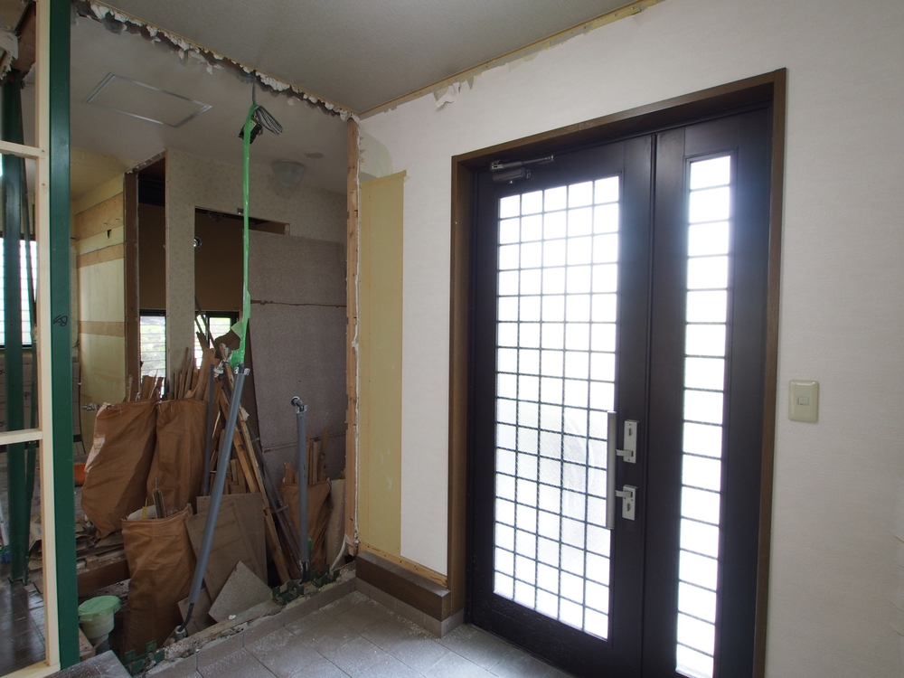 玄関の施工中