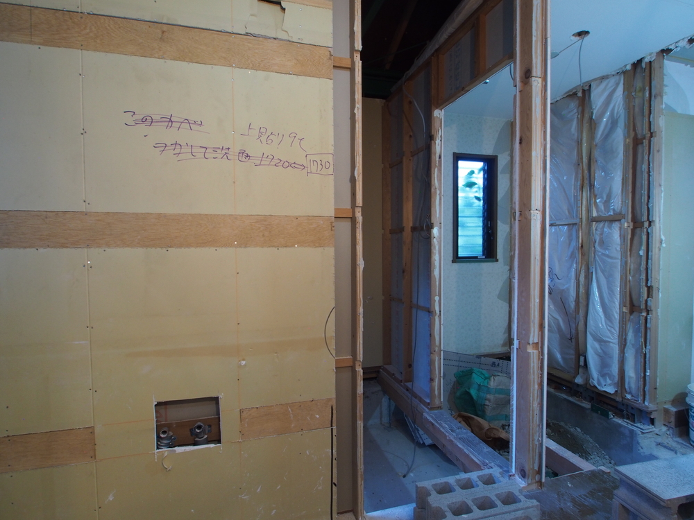洗面室の施工中