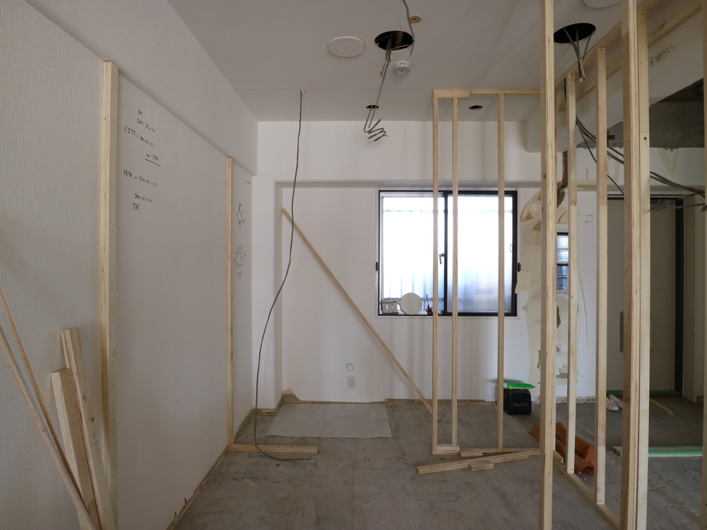 ウォークインクロゼットの施工中