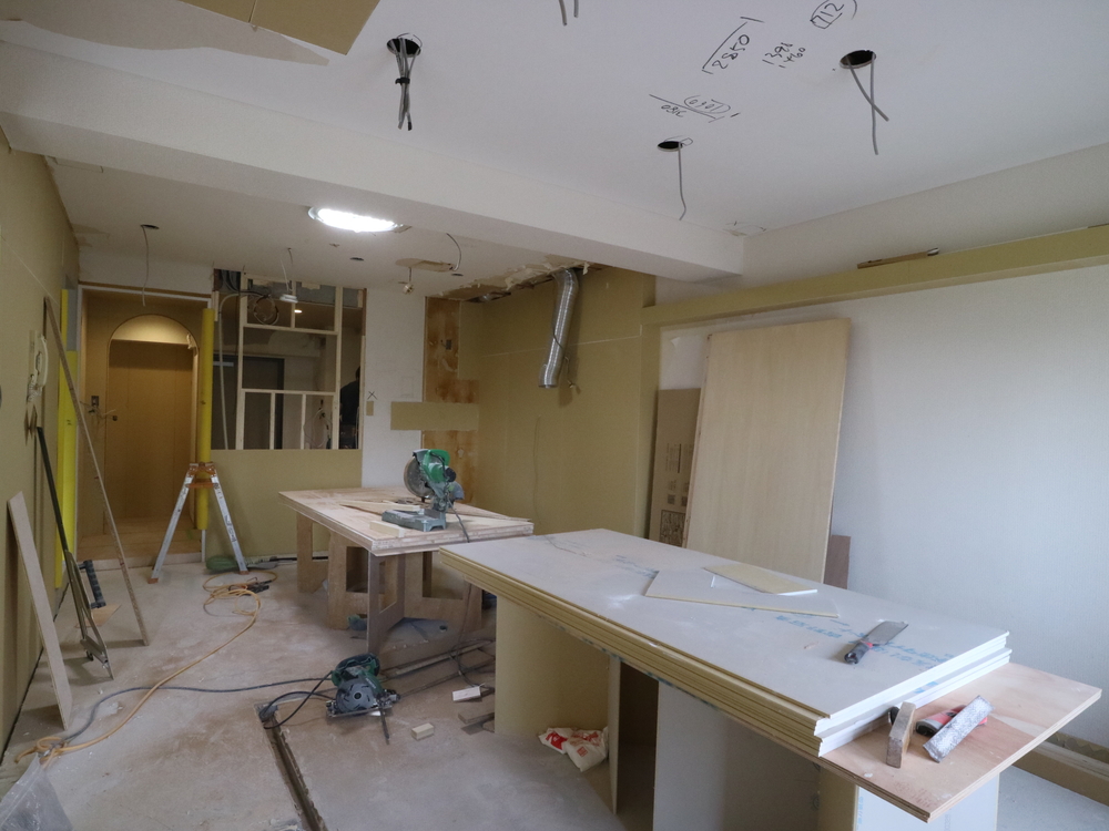 リビングの施工中